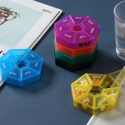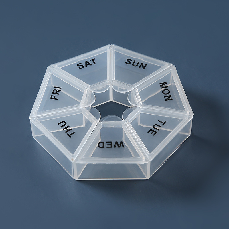 This medicine box is made of PP material and is smart and safe. It can store pills needed for 7 days. It is easy to use, durable, compact and perfect for everyone's travel and home. It is very suitable for storing pills, small jewelry or earrings, nails and other items.